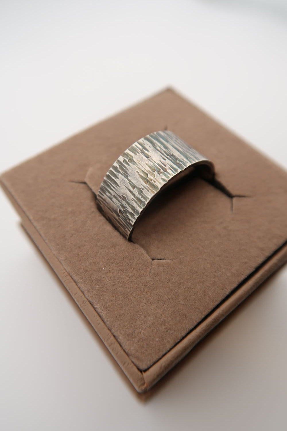 Inspired by the rocky paths of Castle Crag one of the many famous wainwright fells in the lake district. Having walked it myself I took inspiration from the slate formations found here and hand formed the texture into silver. Oxidised to create the dark finish and highlighting the slate formations.