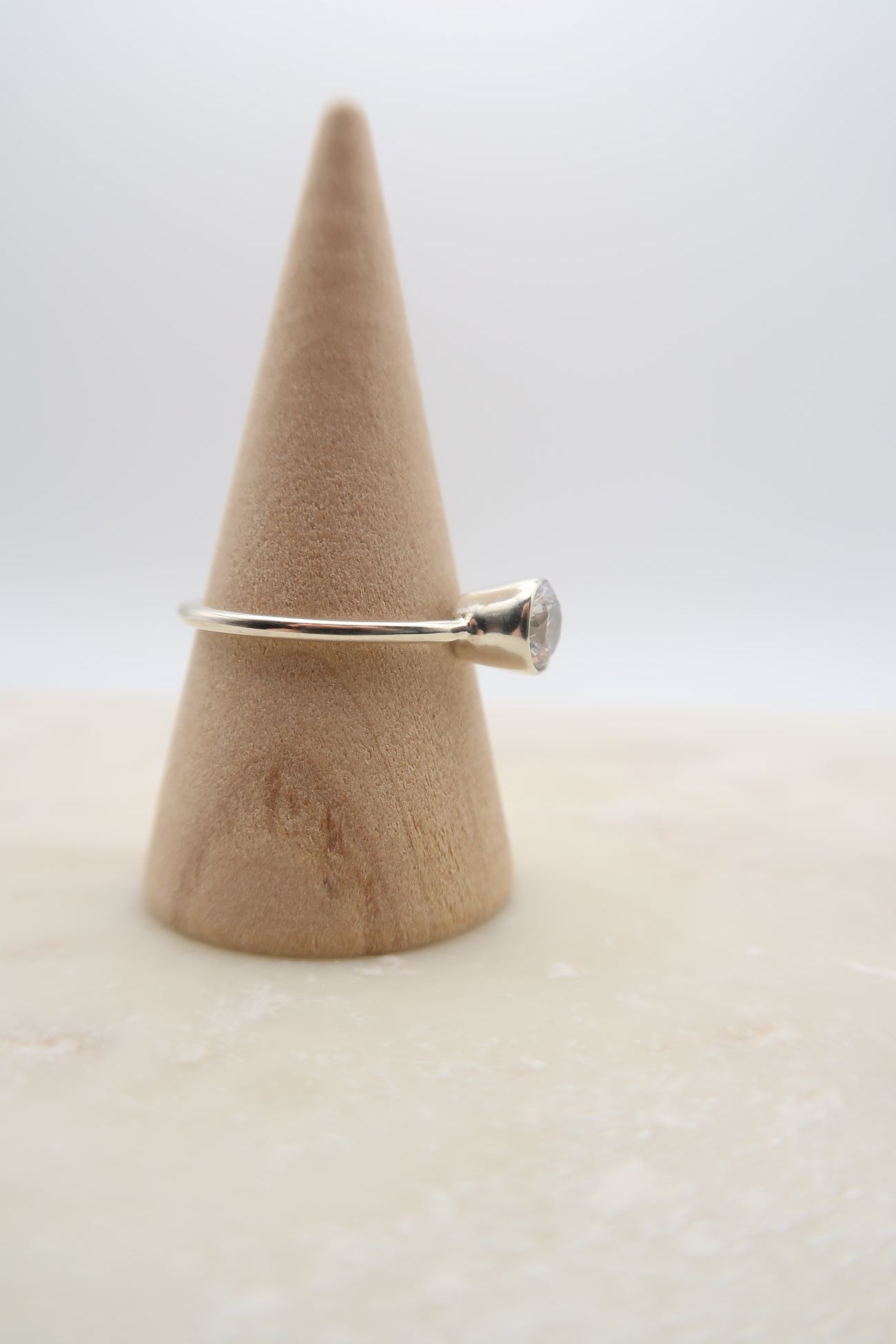 Handmade in silver with a dazzling cubic zirconia. Enclosed in a solid silver collet setting with an open base to let the light through to sparkle.