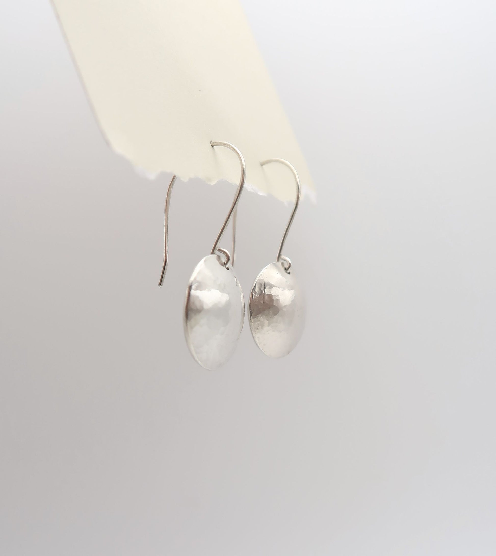 Round hand domed silver drop earrings delicately detailed with a fine hammered finish to give that sparkle. Wear them everyday or all night!